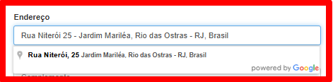 Ao ser preenchido, o sistema indica um ponto de localização com base nos dados: selecione-o para confirmar o local do endereço antes de salvar a informação.