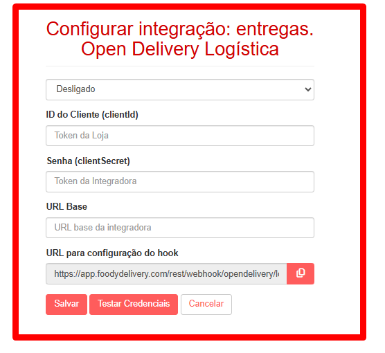 - URL Base: Sua Base de URL do Open Delivery