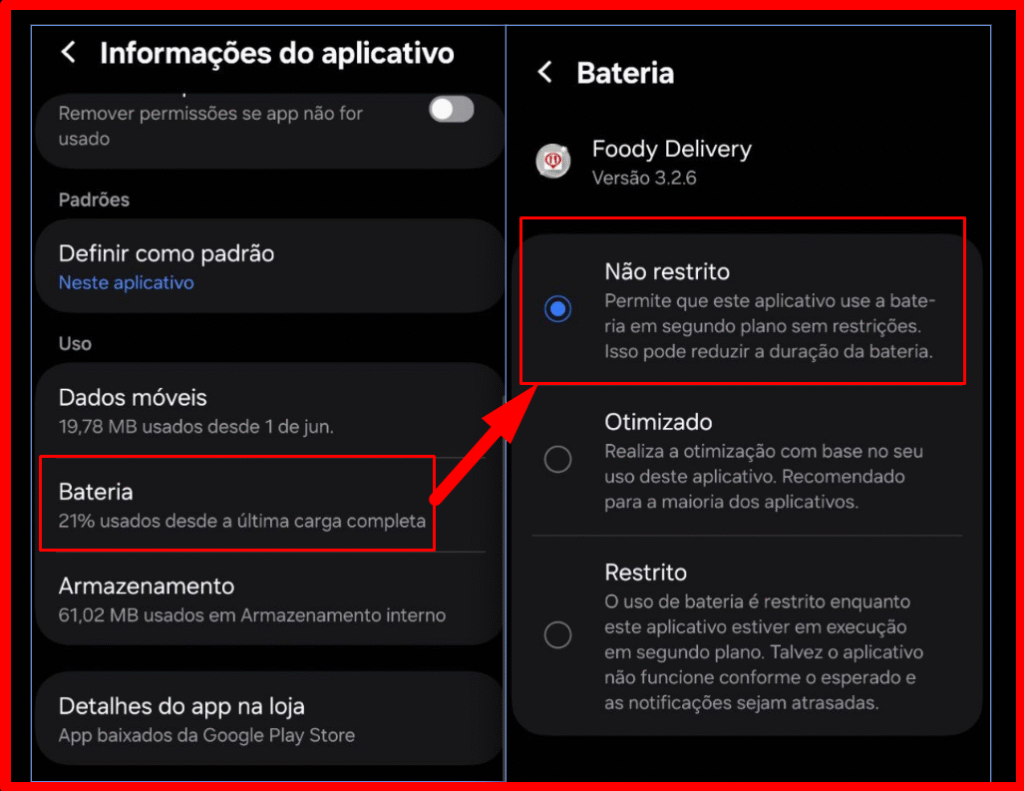 Para desativar a otimização de bateria, siga o passo a passo a seguir: