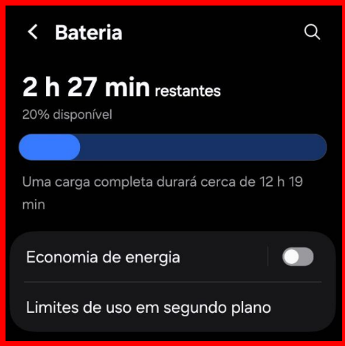 Para alguns aparelhos também haverá uma opção para aplicar a economida de bateria em todo o aparelho celular: Esta opção você pode desliga-la em Configurações, acesse a opção Bateria e desative a opção Economia de Energia.
