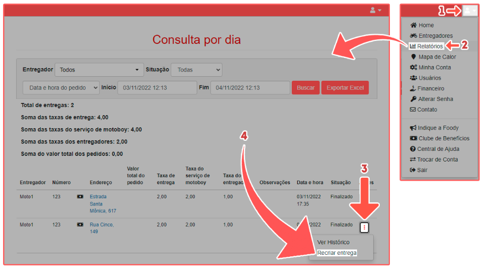 A funcionalidade de Recriar entrega poderá lhe ajudar a criar pedidos já processados, que tenham sido Finalizados ou Cancelados na Foody Delivery.
