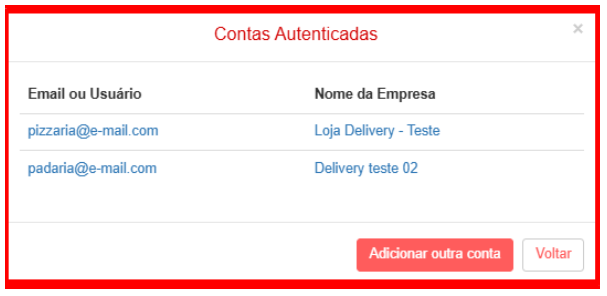 Assim, quando você clicar em cima do e-mail do restaurante que deseja acessar, vai aparecer automaticamente o sistema daquela respectiva loja.