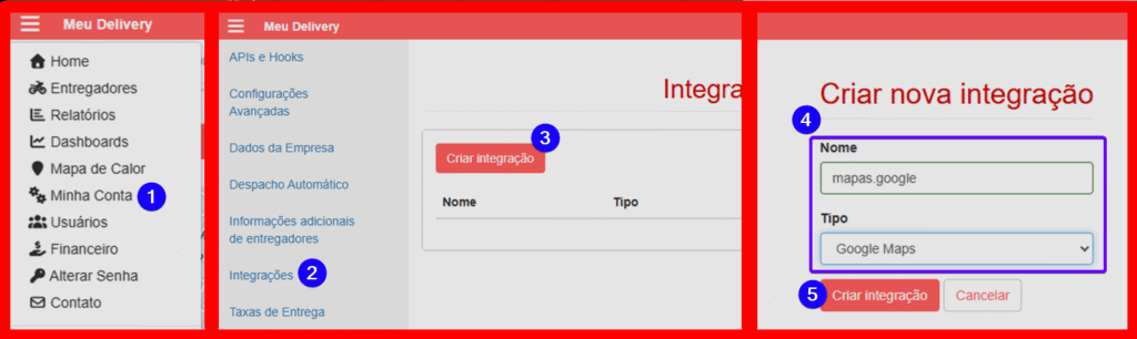 - Clique no botão Criar Integração;