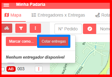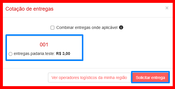 - Selecionar o(s) pedido(s) que deseja cotar a entrega;
