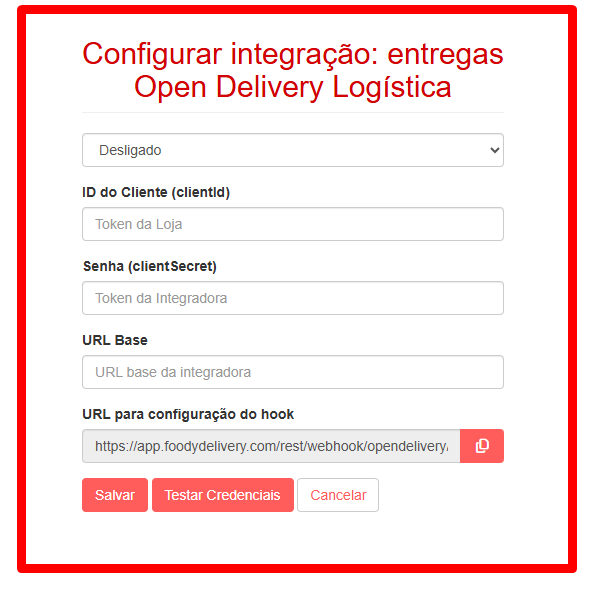 Para Obter o ID do Cliente (clientId), Senha (clientSecret) e URL Base, Você precisa solicitar isso para o seu Operador Logistico, ou seja, a empresa que deseja integrar o serviço na Foody Delivery.