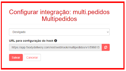 - URL para configuração do hook: Esta URL deve ser copiada e colada dentro de seu sistema Multipedidos.