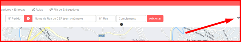 No canto superior direito de seu painel operacional Foody haverá um ícone em formato de deta para baixo ( ⌵ ) para expandir os campos de preenchimento de novos pedidos.